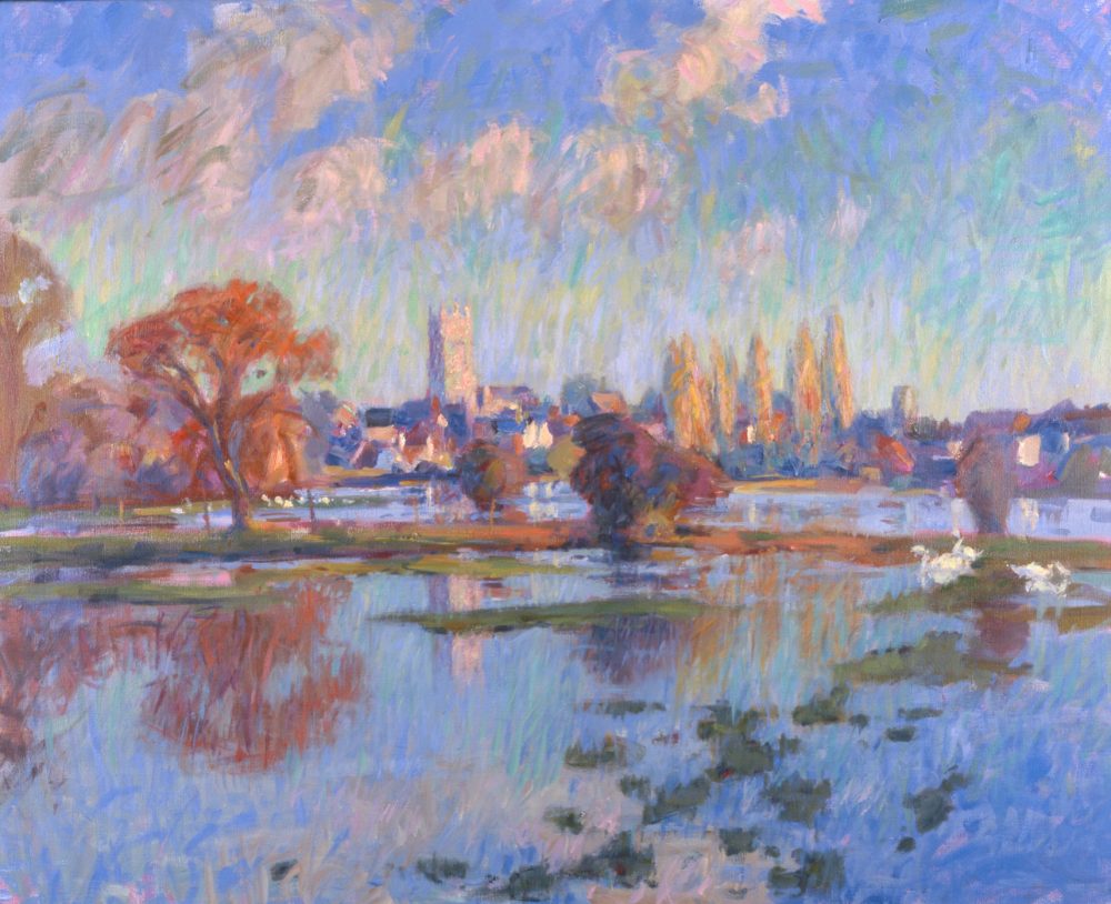 November Evening, Mendham Marshes in Flood (HG315) Oil on Canvas 28" x 36"
