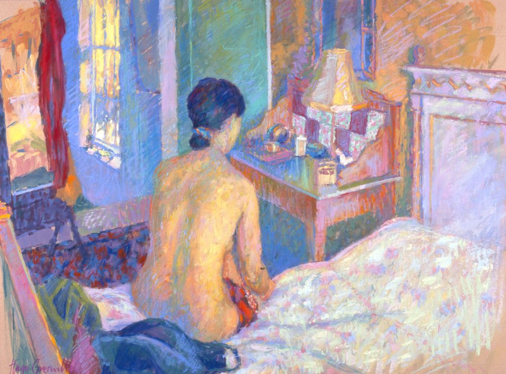 Study for a Bedroom Interior with Two Figures (HG334) Pastel on Board 26.5" x 19"