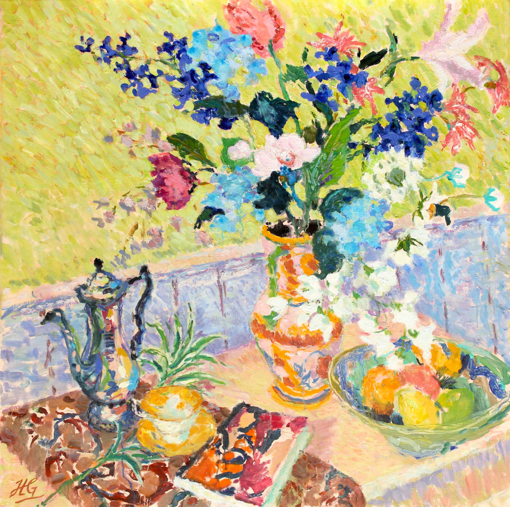 • HG1591 Still Life with Hydrangeas and Lily 42x42 HG1591 Still Life with Hydrangeas and Lily 42x42