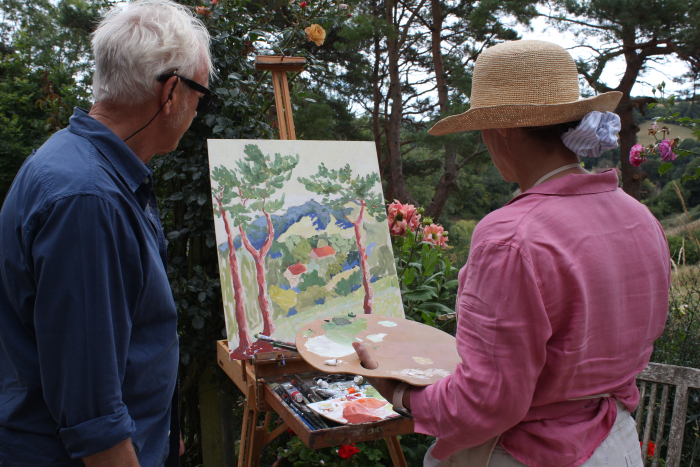 Taking the work of both the Impressionists and Post Impressionists as inspiration in our morning slide shows, we ventured into the landscape and into Hugo’s garden to find our subjects, where students were introduced to the a world of colour and the way colour works. Experimenting with the nuts and bolts of painting, this was a perfect course for both beginners and the less experienced oil painters who wished to further build their confidence in the processes of painting.